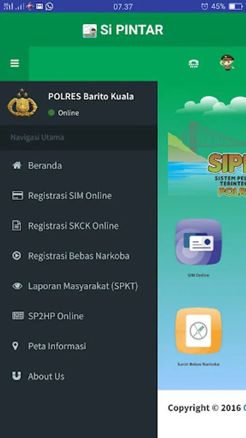 Sipintar is an Integrated and Accurate Information System for the Barito Kuala Police which consists of services