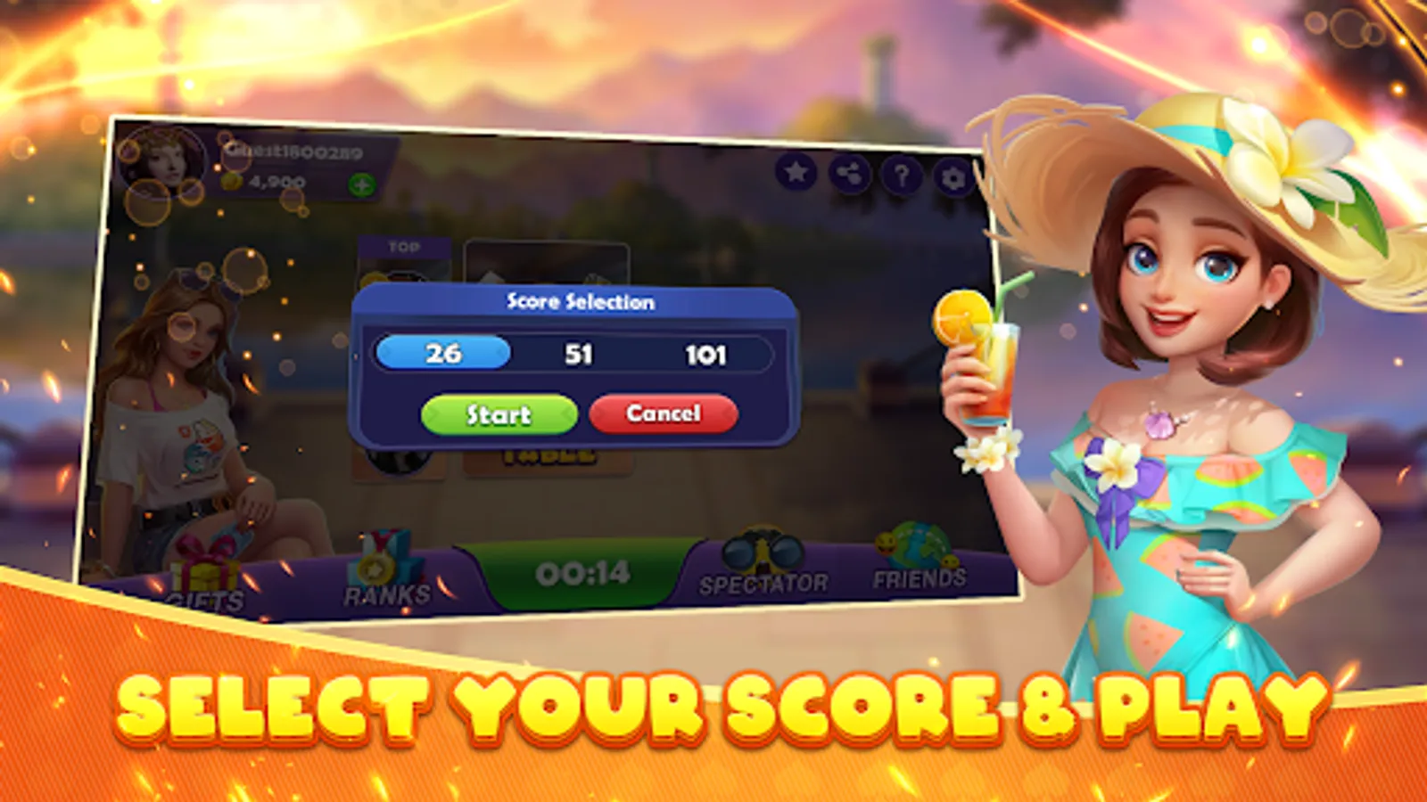 -play the 101 point game with your partner and win the match before the opponent team.