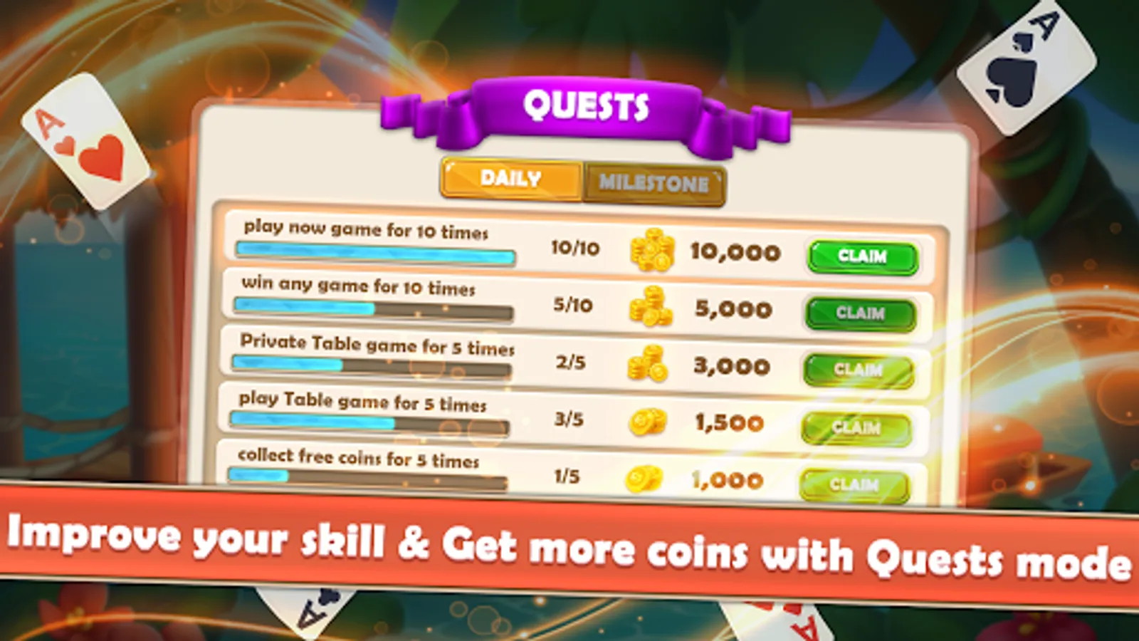 -Get 50,000 coins as a Welcome Bonus to the kachuful card game, and get even more coins by collecting your “Daily Bonus” every day!