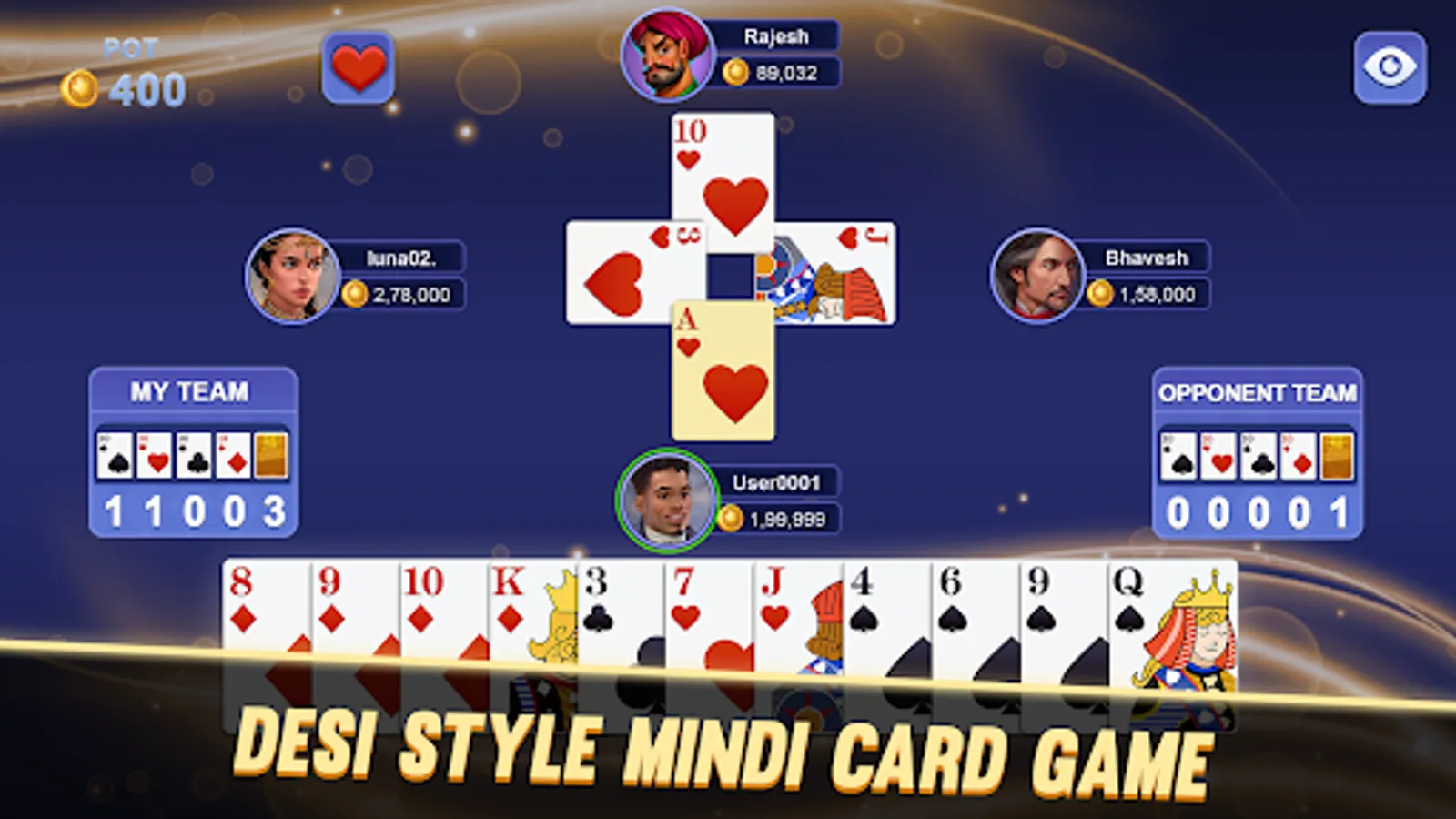 mindi most popular card game in india, Mindi by OEngines studio, Non Stop mindi card game fun is finally here. Mindi is a most popular in India which is also knows as Mendi Multiplayer, MindiKot, Mendikot, Mendhi Coat,and Mendhi Dehla Pakad . Mindi with smart AI & UI.