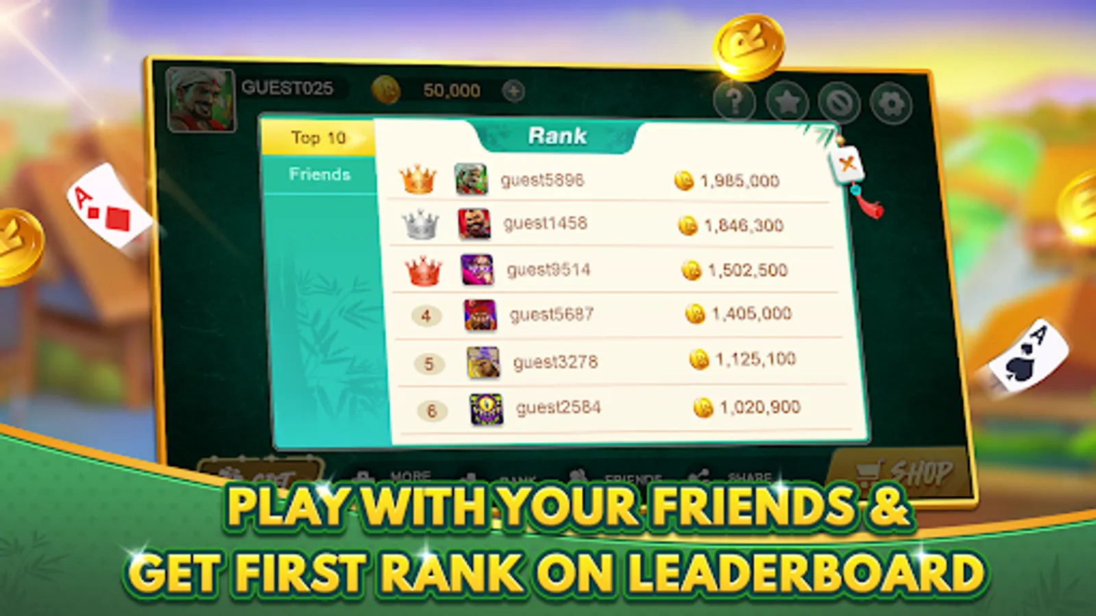 -Leaderboard to get competition with worldwide players with the rummy online multiplayer game.