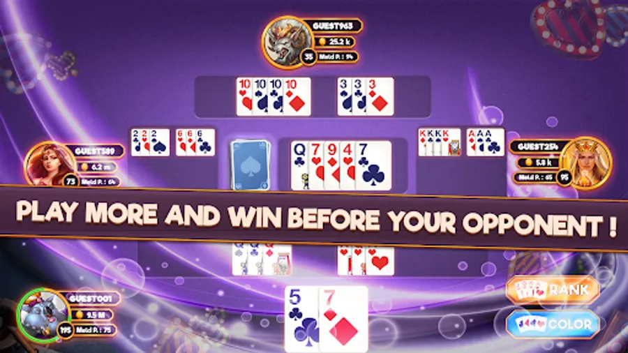 Rummy 500 card game pro offers you a great experience against Great AI. You can play custom tables.