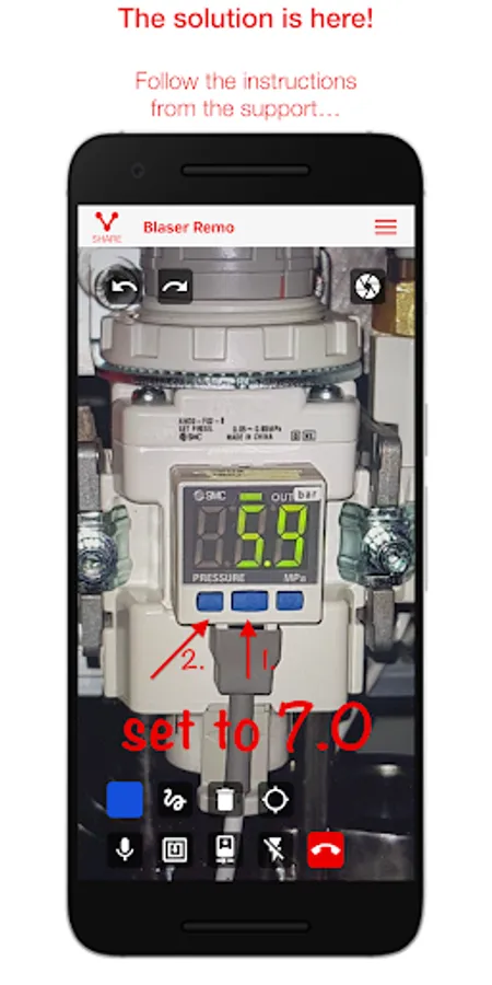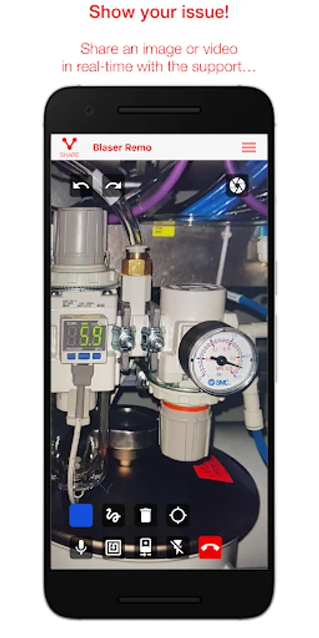 After a simple registration process your support expert is only one click away. Explain your problem by sharing your smartphone camera’s view and using the live mark and draw function. With help from your expert your system is up and running again in the shortest possible time.