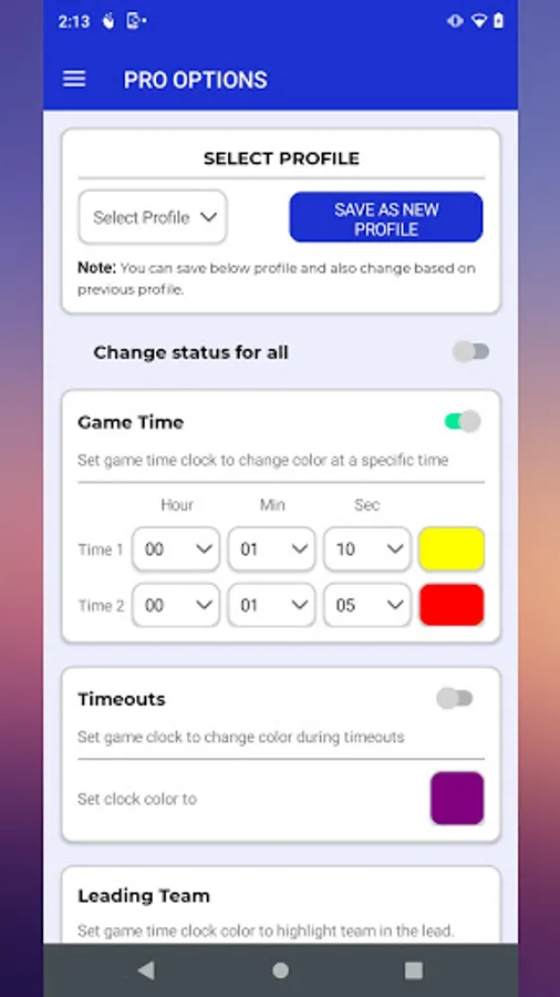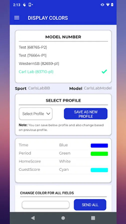 Set the Standard Colors and the Pro Color Options on an OES ColorCast Scoreboard.