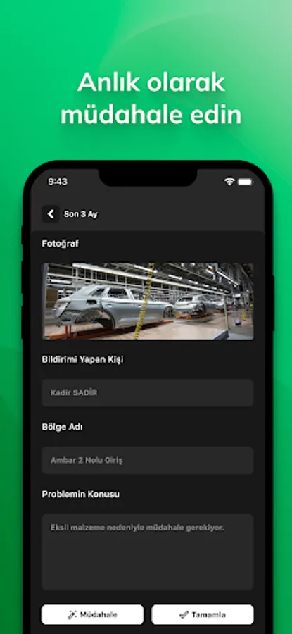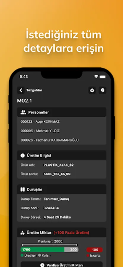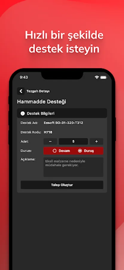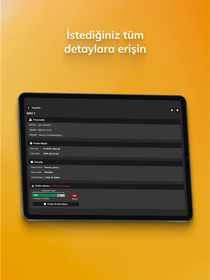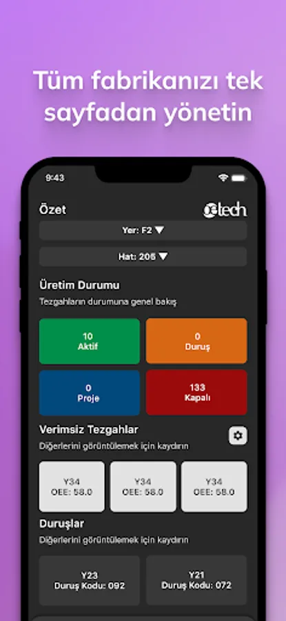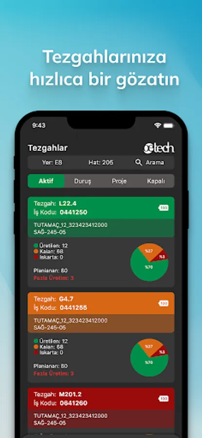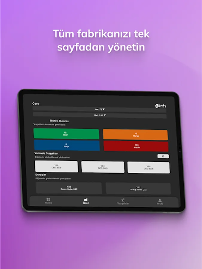 With the Oetech data collection system tracking application, you can make machine status, support requests, maintenance, warehouse, quality notifications and intervene in the notifications. With 5s notifications, you can report and manage situations that do not comply with environmental regulations.