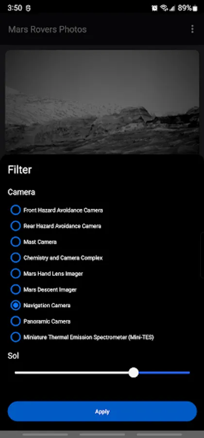 - Filter criteria for Mars Rover Photos including Camera and Sol