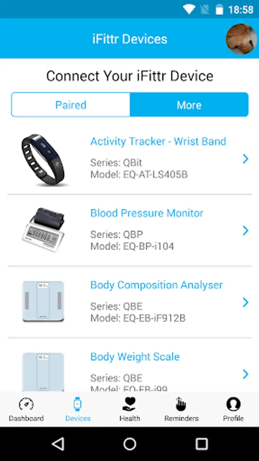 iFittr range of smart devices automates measurement of data and synchronizes it with iFittr app via bluetooth. Currently, devices that have been integrated are: