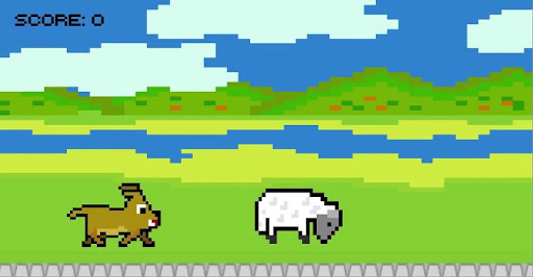 Our dog is tired of shepherding and it wants to make his job funnier. Thus it create a game for himself: jumping on sheep.
