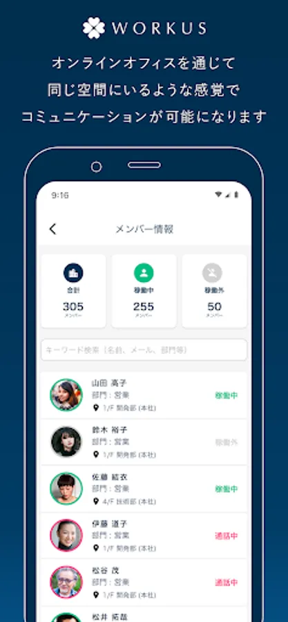 By sharing work location information, we support the selection of the optimal communication place and method.