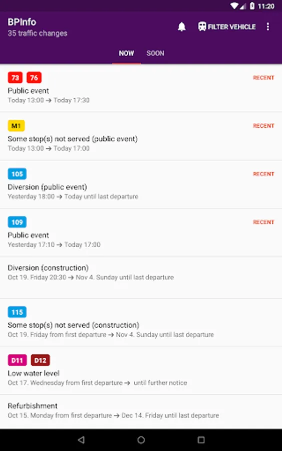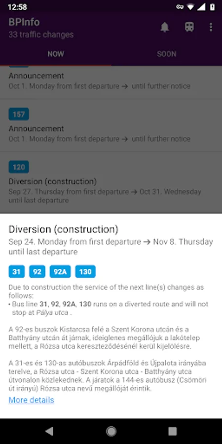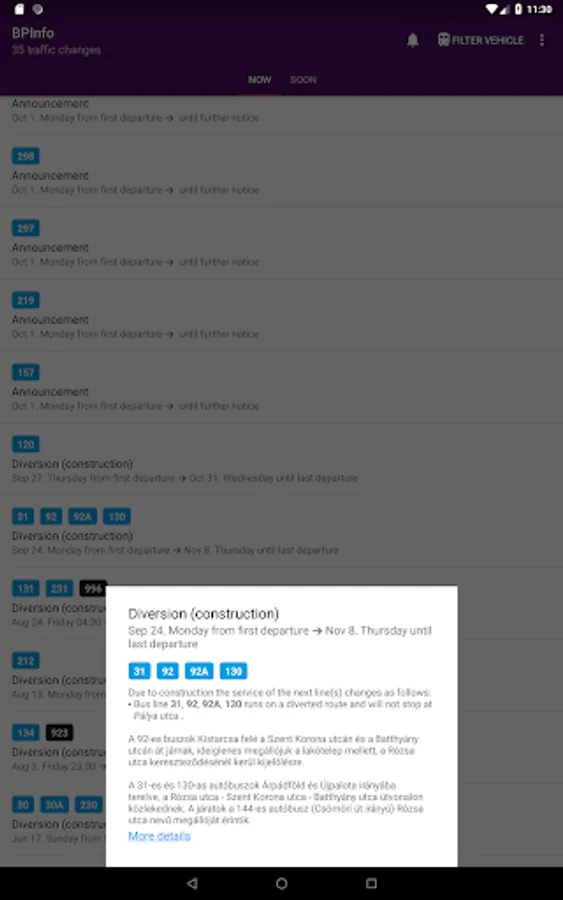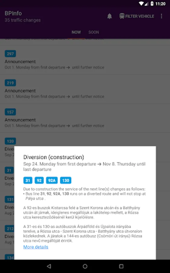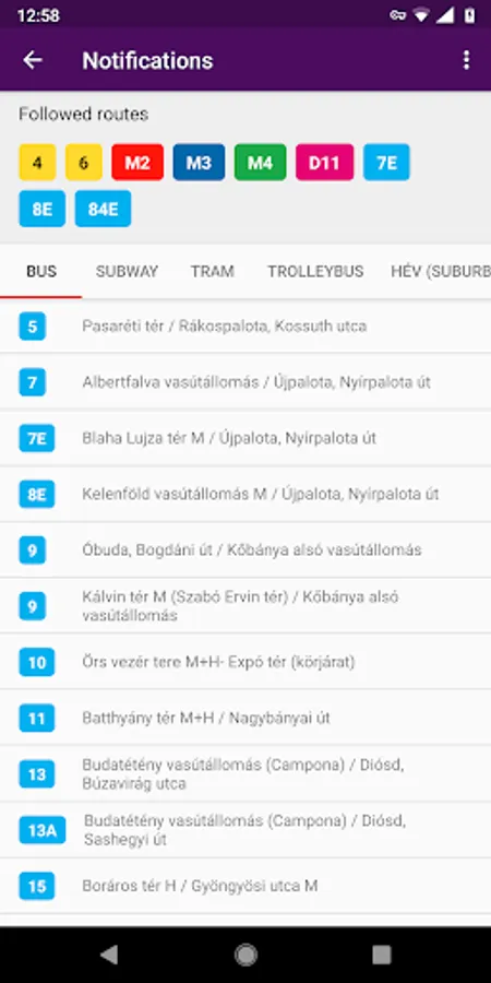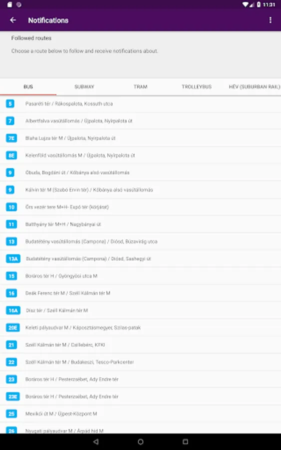 • bus, subway, tram, trolleybus, HÉV (suburban rail) and ferry traffic info
