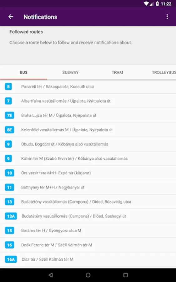 Traffic data is provided by the BKK FUTÁR public API. The displayed information is accurate in general, but minor inaccuracies could happen at any time. You can report these to BKK at futar@bkk.hu (or in the app in the settings screen).