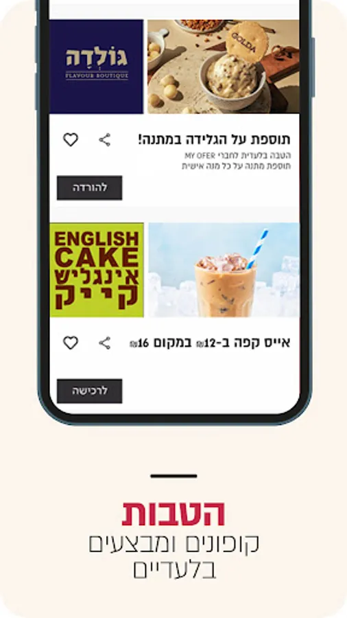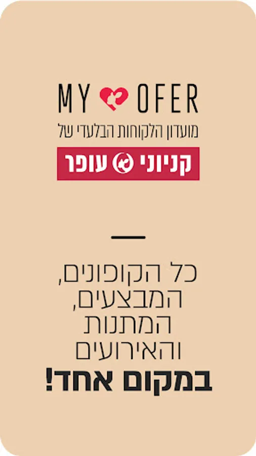 Ofer Malls, the leading mall group in Israel, invites you to download the upgraded MY OFFER app and enjoy a variety of exclusive coupons, promotions, discounts on the most valuable brands and gifts - all for easy redemption at the mall nearest you.