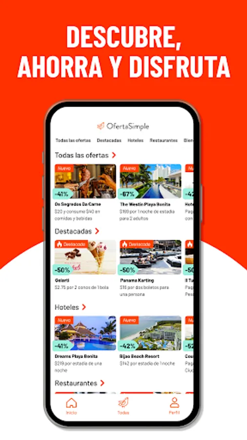 OfertaSimple offers you new offers every day so you can enjoy life to the fullest. Whether you are looking for a product you need, a restaurant to try, a hotel in a destination you want to visit, or simply something new to do, OfertaSimple has it all! in one place! With this app you can: