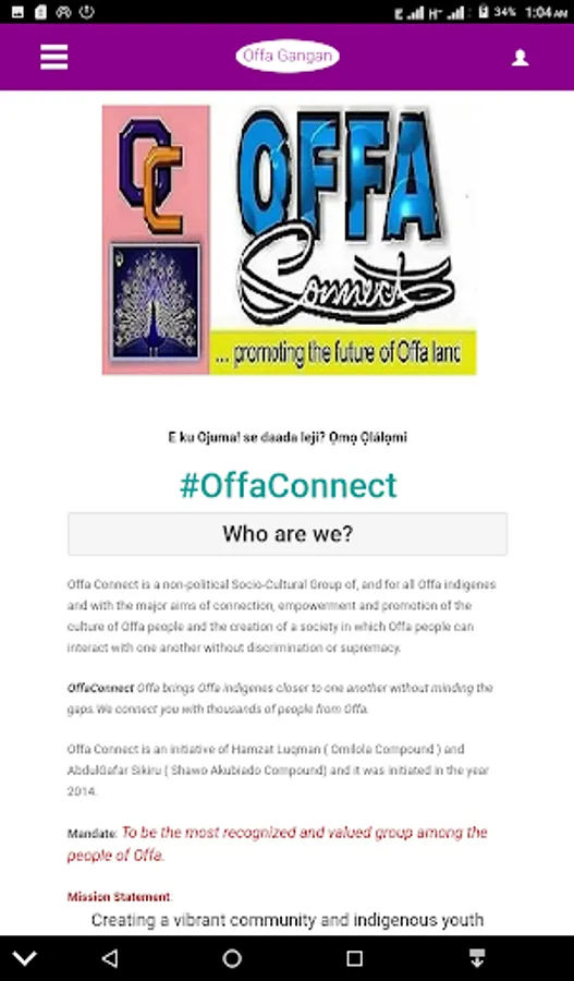 OffaGangan is an all in One Offa Indigenous apps, this apps brings Offa ( A town in Kwara State ) to your finger tips. Explore Offa on the go! This initiative is brought to you by #OffaConnect.