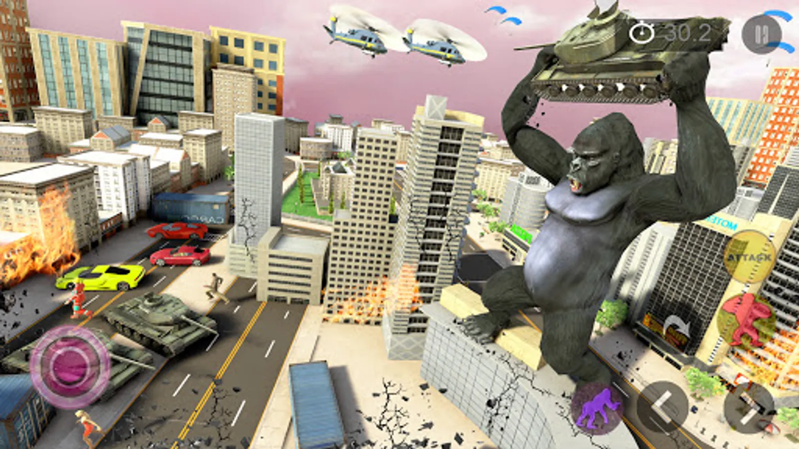Angry gorilla is away from its natural habitat goes on a full monster rampage where the apes monsters are on full city smashers to destroy the city to make it back to their natural home in a Furious Gorilla: Angry king Kong City Attack. This angry gorilla attack involves an attack on whatever comes in the way of this angry King Kong. The Gorilla Rampage Smash City and chimpanzee game also include the incredible monster hero, which is on a monster city rampage, fight against rival forces on land and air. City battle gets more amazing when the Bigfoot monster, see in other monster games & smasher city games or also monster gorilla attack games.