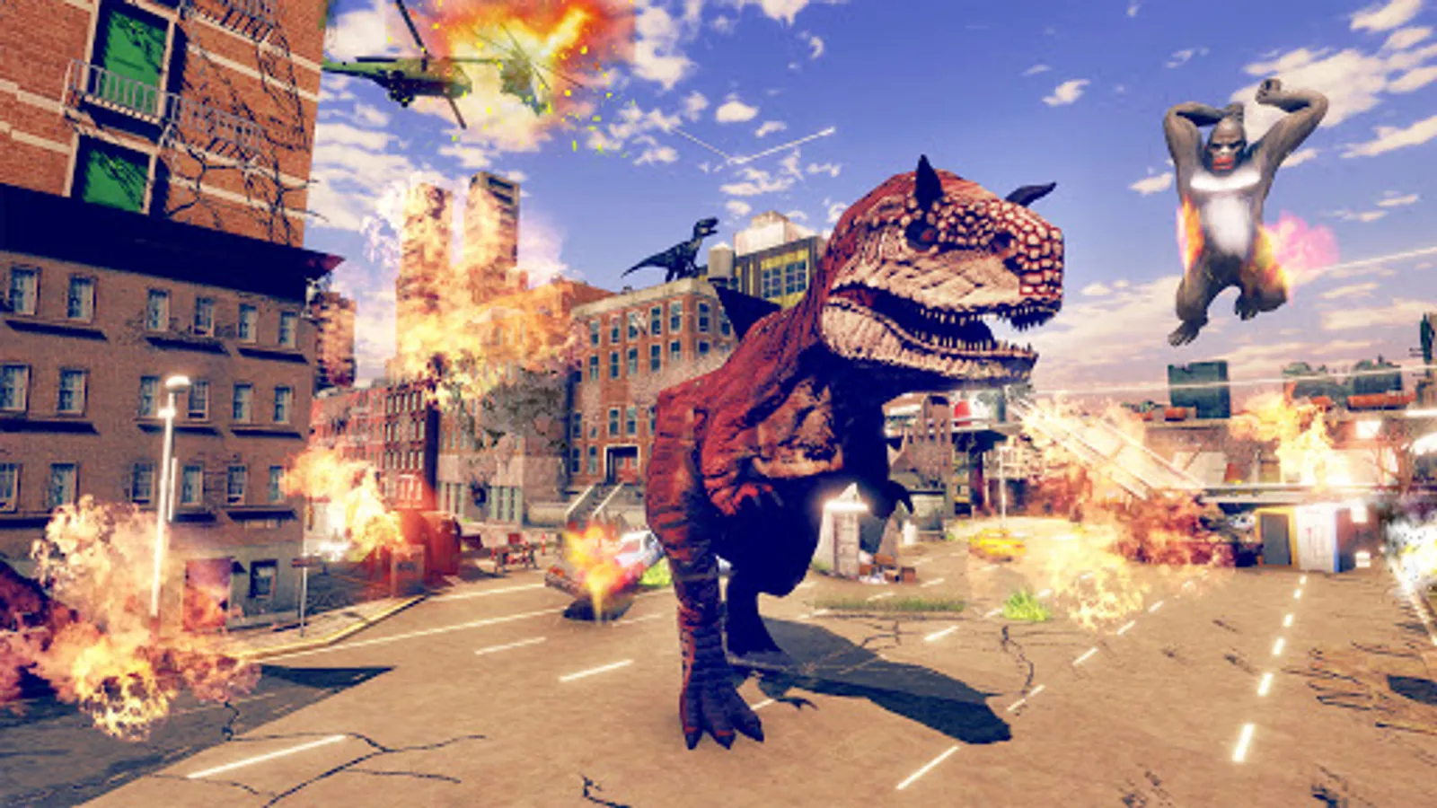 Rampage through the streets and smash city to pieces with king kong monsters games rampage and dinosaur vs king Kong 🦍 vs 🦖 in destruction simulator game.