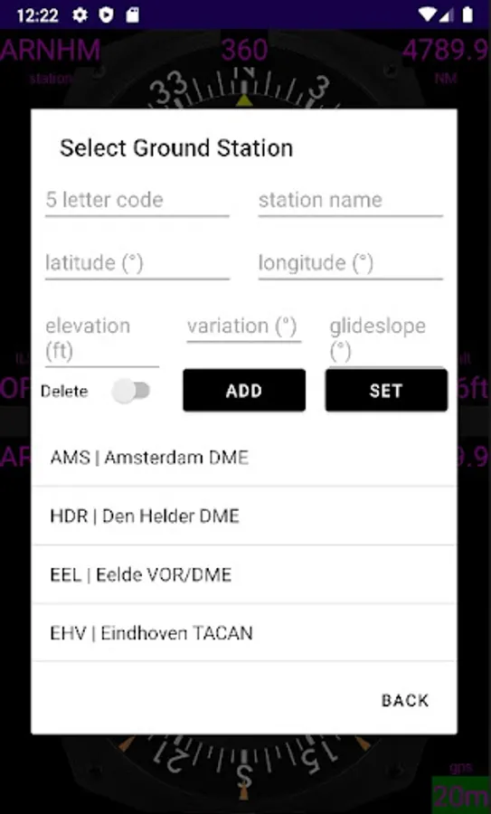 Selecteer een GPS locatie uit de lijst of voeg zelf een locatie toe en gebruik deze als virtuele VOR of NDB. De app gebruikt de ingebouwde GPS locatie van uw device om een volledig functionele CDI of ADF display weer te geven.