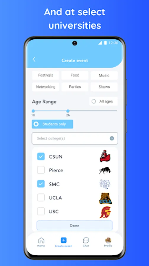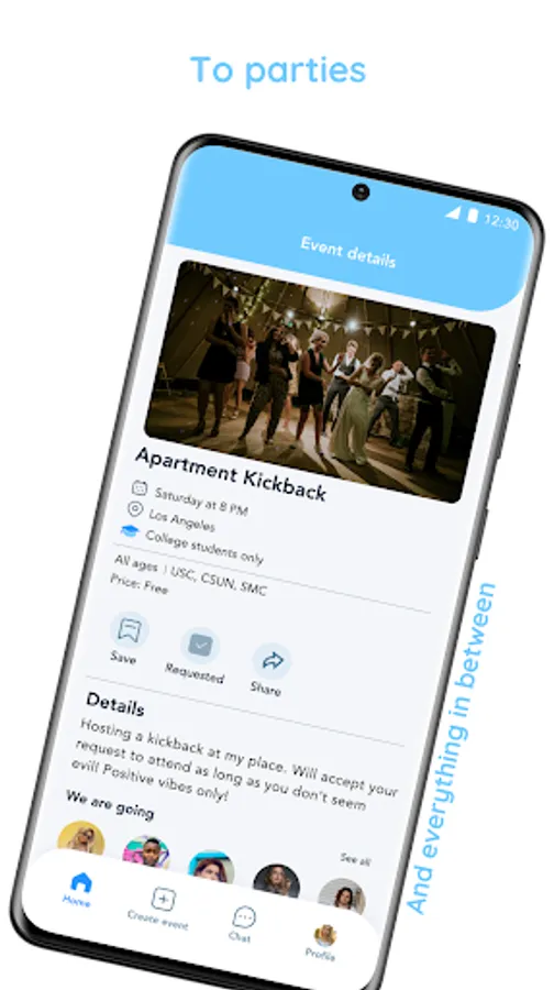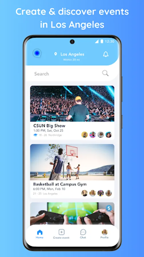 Los Angeles & select universities only! Create and discover events with the crowd you’re looking for.