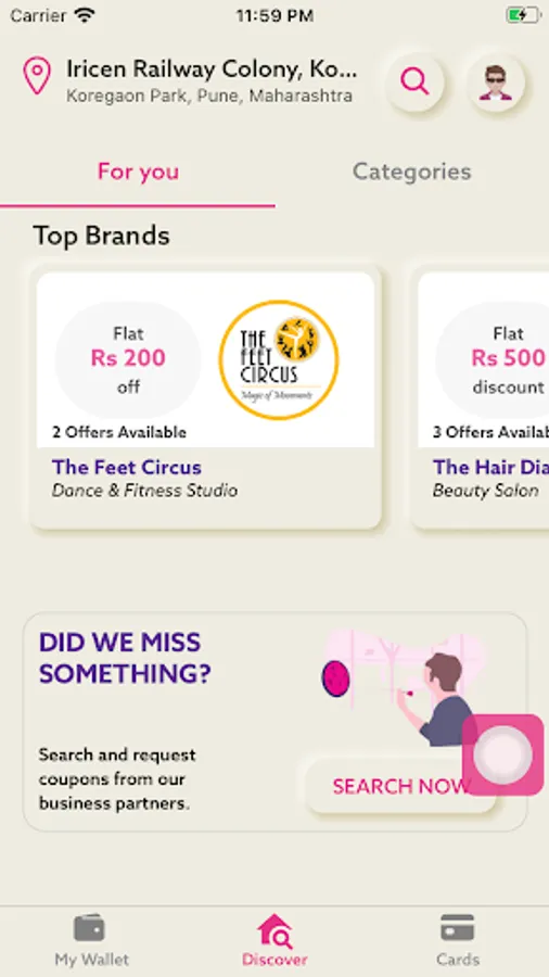 Get a free complimentary first-time visit exclusive digital coupons from merchants around and discover the best deals and offers around your location in different categories like Food, Spa, Salon, Fitness, Fashion, Health, Yoga, Zumba, Nail Art, and Movies.
