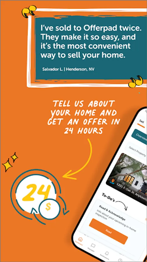 The Offerpad app is your all-in-one solution for selling your home or buying a new one! Skip the hassles and stress of listing your home for sale with an all-cash offer from Offerpad. Request an offer and in 24 hours see how much we could pay for it. Like the price? Use the app to simply and seamlessly manage the entire sale of your home 24/7. On the hunt for a new house? Utilize the robust features of our app to find your ideal home using our smart search filters and detailed property information.