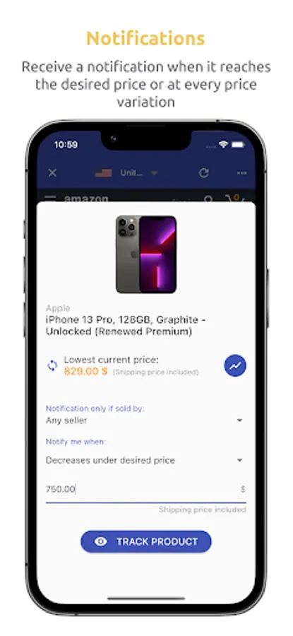 -Receive a notification on every price change or when it reaches desired price