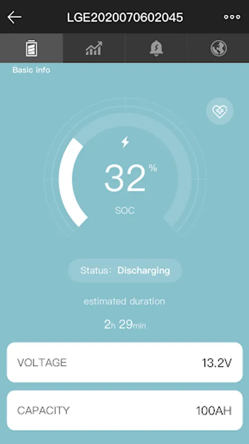 * Displays State Of Charge (SOC) percentage with circle graphic.