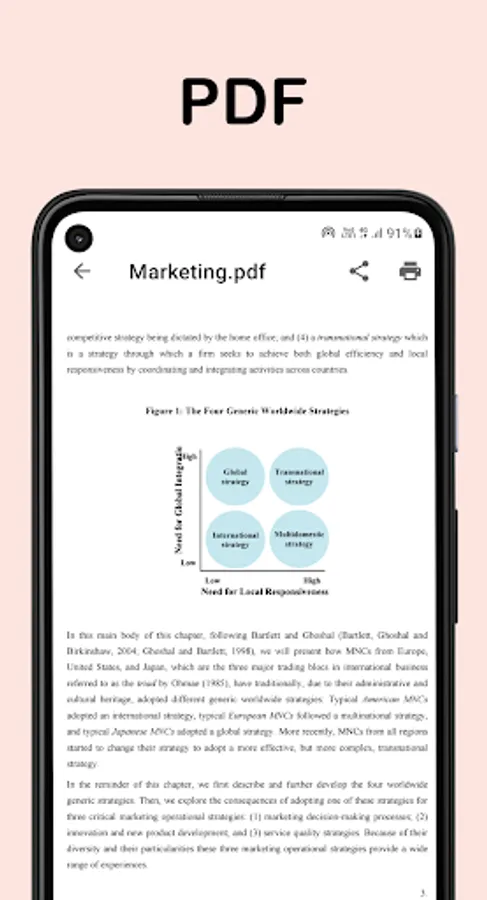 🖨️ Print PDF, Word, PPT: Just click on the printer button to print files directly from your mobile phone.