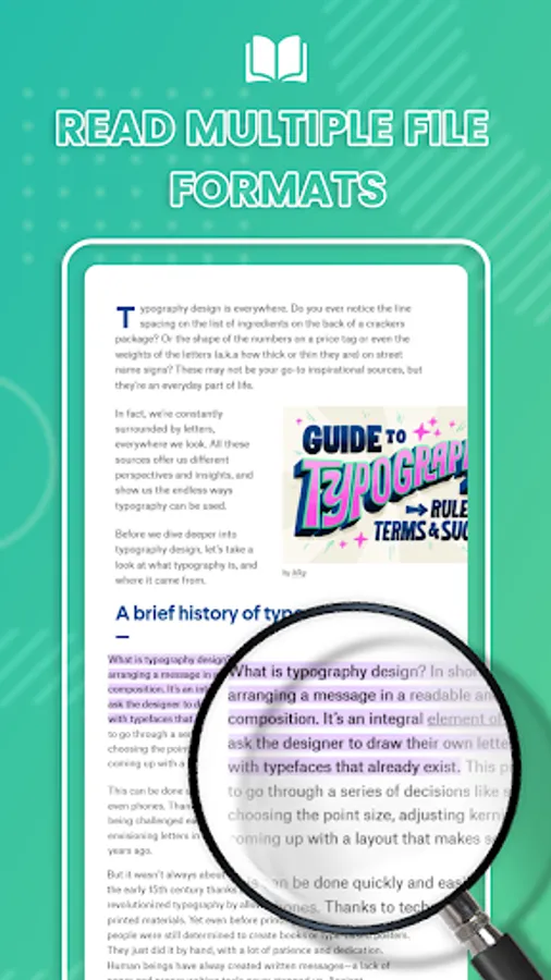 Document Viewer, XLSX Viewer is a multifunctional e-book reader app. Document Viewer, XLSX Viewer is suitable for opening PDF and docx files, magazines, comics and also for listening to audiobooks and working with documents on smartphones and tablets.