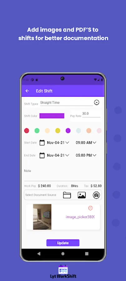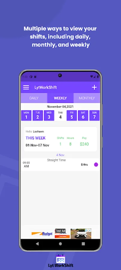 Lyt WorkShift is a application that helps you accurately record, analyze, and store your time, earnings, and taxes on shifts worked at your job.