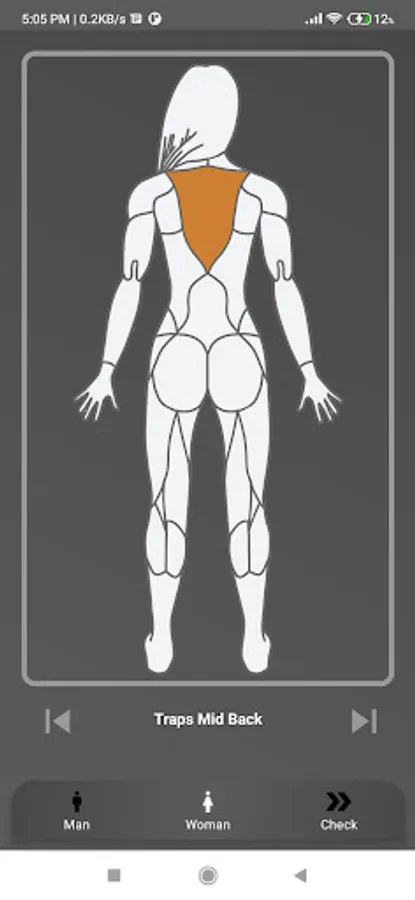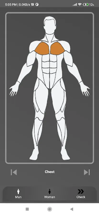 This app allows you to centre in on any body part, for example the chest and will give you a number of exercises which will train that body part. Information is presented in both gif and descriptive form to enable an easy understanding of the exercise.