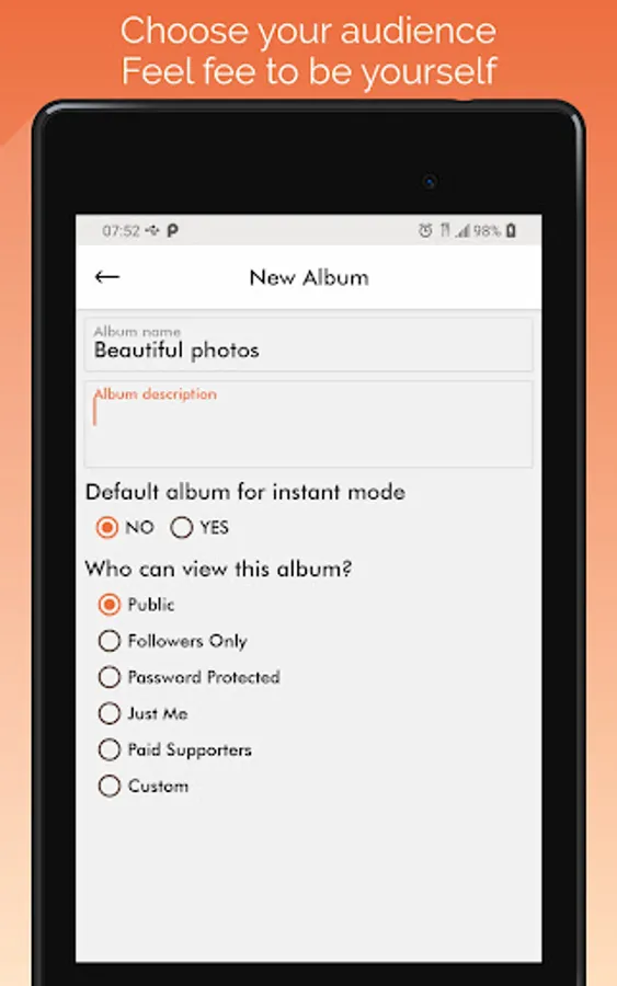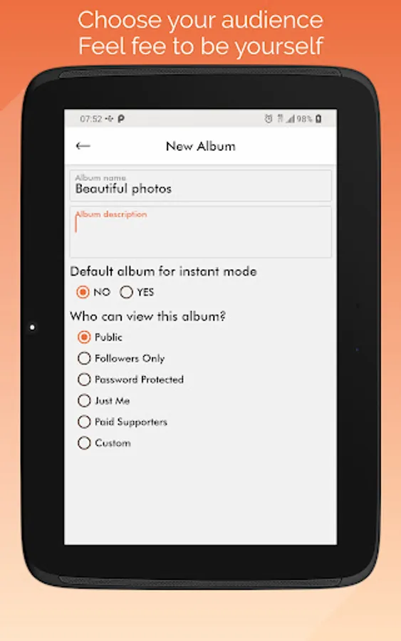 Anyone can join for free, and creators can easily separate their regular and exclusive paid content using albums. Use it as your portfolio maker to showcase your portfolio to the world chronologically. You control who sees the photos, videos and audio you share.