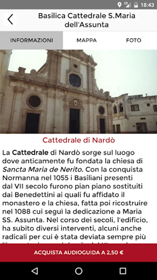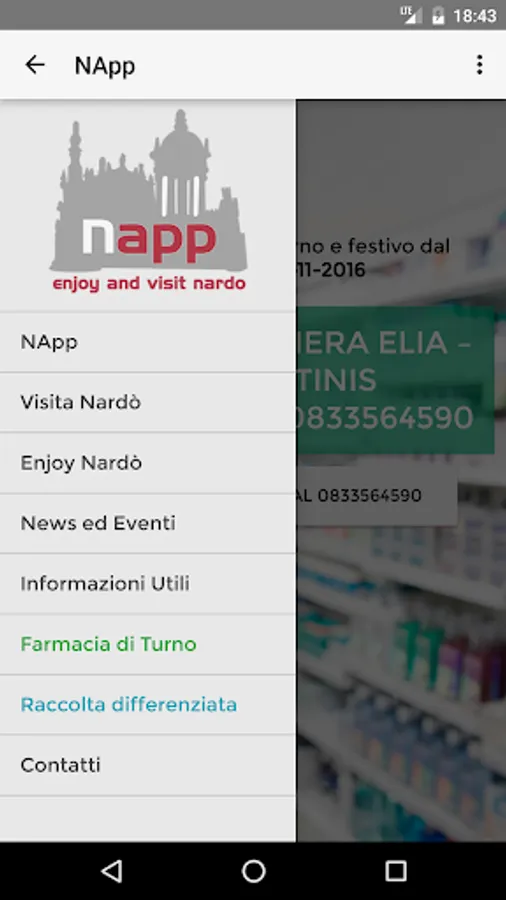Napp is a mobile device, developed under the auspices of the City of Nardo (LE). Born with the aim of providing a useful service to residents and citizens, as may be updated about events, news, events, businesses and more of their city, and for tourists, who will have an area with Points Interest of both cultural and entertainment (where to eat, sleep, etc ...)