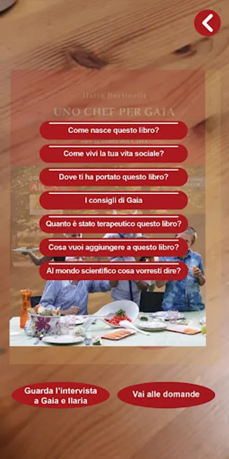 Download the app, frame the cover of "A chef for Gaia" and watch the interview with the protagonists of the book. Go to the questions to expand the contents of the paper text of Emmebi Edizioni!