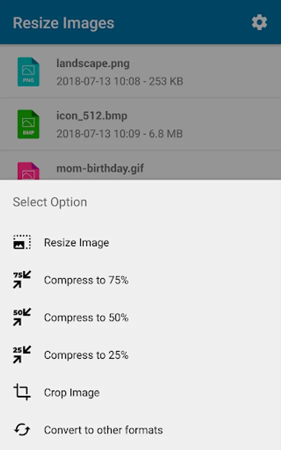 Compress Images: reduce the size of images and photos, compress photos to 75%, 50% or 25% of their original size.