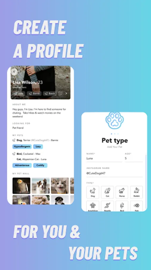-Have fun exploring a community of pet lovers with different interests and preferences