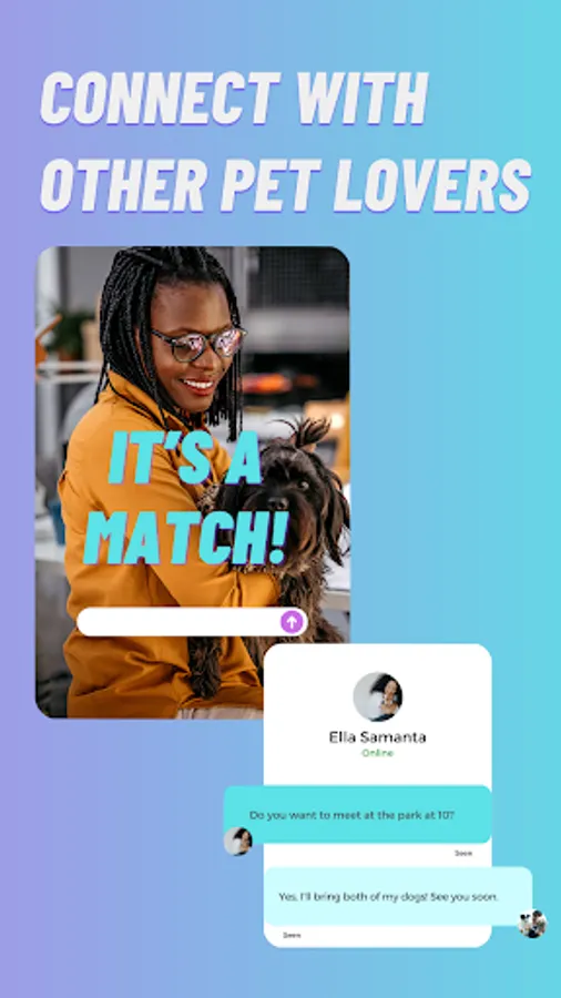 ◆ Find someone you and your pet will love! With an advanced matching algorithm, you will be sure to form deeper connections based on shared passions, and of course, a mutual love of pets!