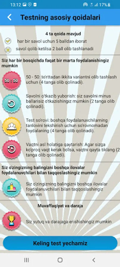 Assalomu alaykum. Aziz bilimdonlar. Bu ajoyib ilova sizlar uchun. Maqsadlar sari bir qadam bo'lib xizmat qilsa mamnun bo'lamiz.