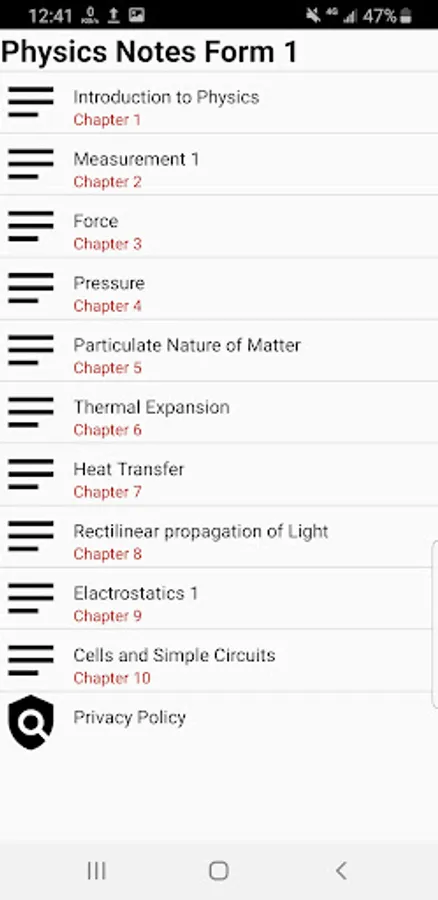 Physics Notes Form 1 all Topics Offline. The topics covered include: