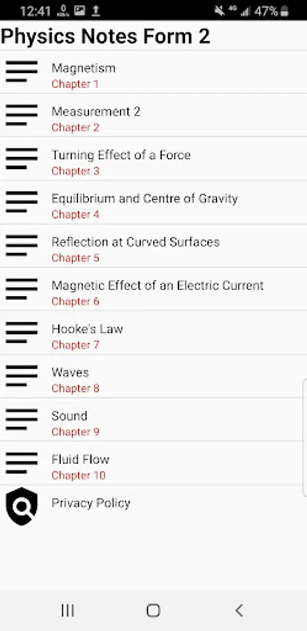 Physics Notes Form 2 all Topics Offline. The topics covered include: