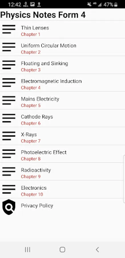 Physics Notes Form 4 all Topics Offline. The topics covered include: