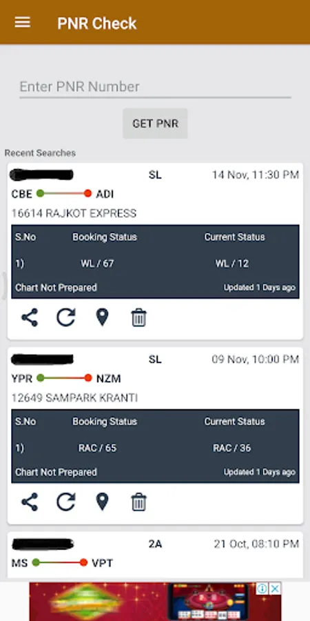 Disclaimer: This app is not associated with Indian Railways. We do not take any responsibility if the data is inaccurate.