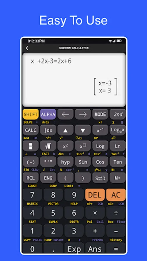 Advanced Scientific Calculator is an Android application designed to provide a comprehensive set of mathematical tools for users who require advanced calculations. With its intuitive and user-friendly interface, this app allows you to perform various scientific calculations, including algebraic, trigonometric, logarithmic, and statistical functions.