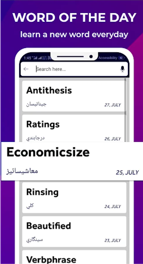 This app sindhi dictionary helps in building your vocabulary by daily words meaning, word of the day alerts. You can find words and track them for learning. you can practice word learning by playing word quiz games. Audio pronunciation tool help in listening correct sound of words.