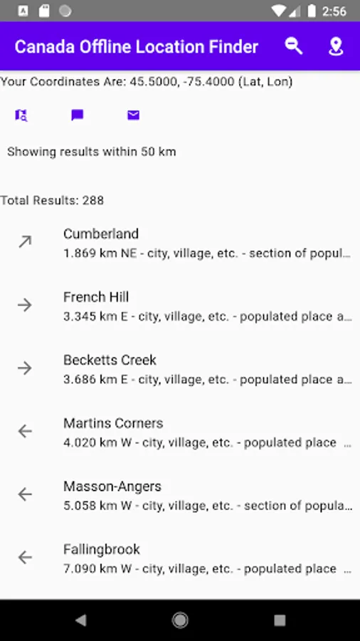 This program is self contained and does not even need an internet connection (however, to find in map or email, you would need internet or a data plan and for text messaging you would need a sms plan).