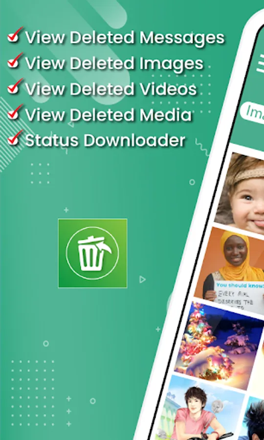 ✓ Recover deleted media file like photos, videos, gifs, stickers and voice notes