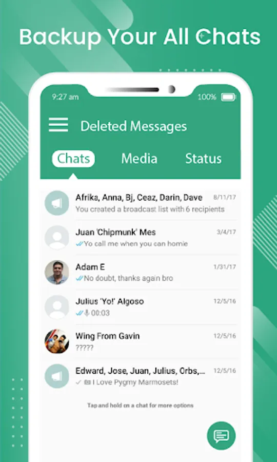 Recover any deleted messages and media without viewing the message. If someone sends you a message and deletes it before your read it or view it, then don't worry at all. Recover Deleted Messages & Media with Status Saver app will recover it for you. Read deleted messages without seen it. Read any message and sender will never know you read the message. Best WAMR app to Recover deleted messages. Use status saver feature to quickly save any status as video status saver for free.