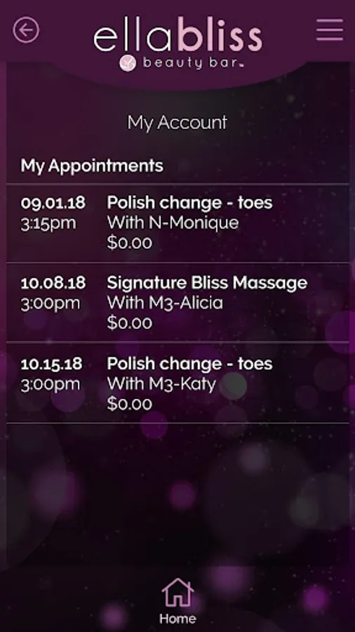 Your next Ella Bliss experience is now just a few taps away. Browse the calendar and select your next service and technician with just your fingertips.