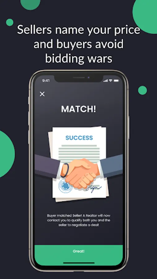 ● No more bidding wars, sellers get to name their price and buyers get to match it!