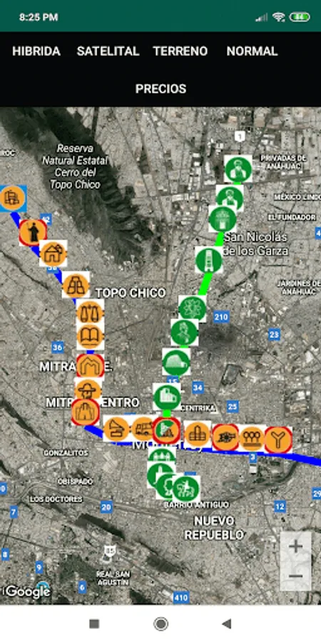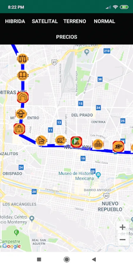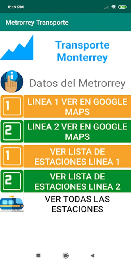 An app where you can consult the stations of the various Metrorrey lines and locations around them.