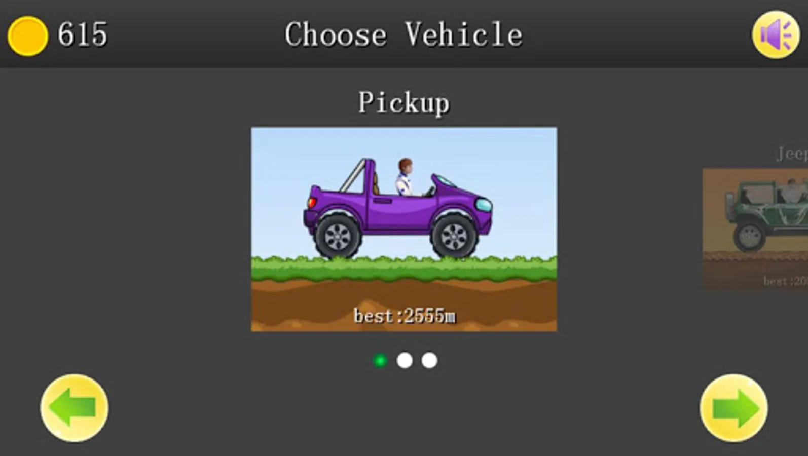 Face the challenges of unique uphill & downhill environments with your different Offroad Cars.Control your Pickup,Jeep or Sportscar to climb mountains with gas and brake.Collect coins to upgrade your car and reach even higher distances!Watch out the progress bar of fuel,You need to supplement fuel before the car run out of fuel!It is a perfect game for everyone who is into racing games!